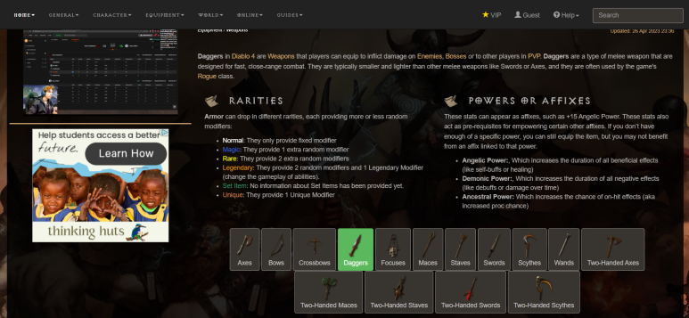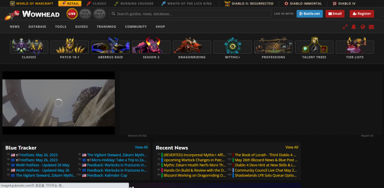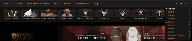 사이트 이름이 wowhead여서 wow에 대한 사이트인 것 아닌가요?라고 생각하실 수 있지만 상단에 보이는 게임 리스트 중 맨 오른쪽에 DIABLO IV가 있습니다